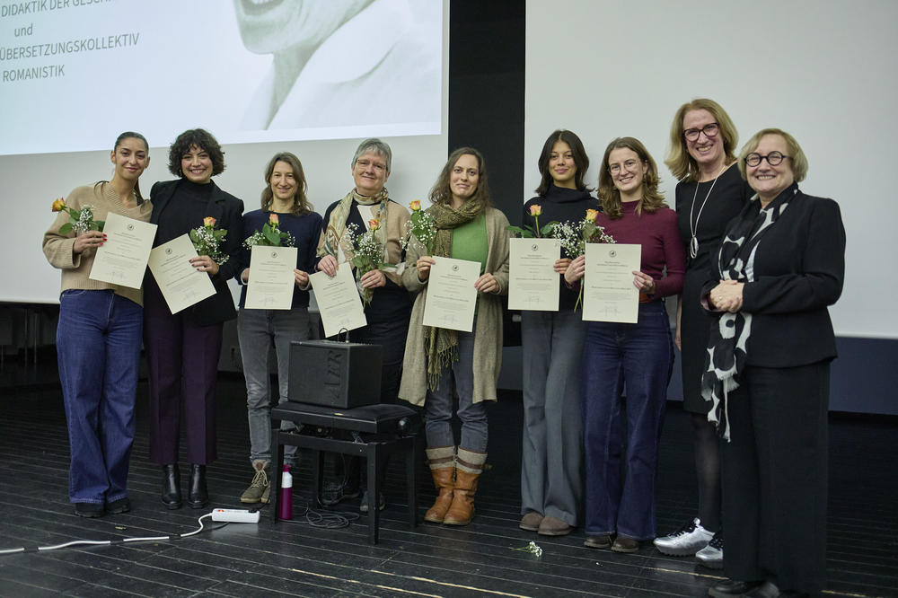 Das studentische Übersetzungskollektiv wurde für sein herausragendes Engagement für die Thematisierung von Feminiziden, ihre wissenschaftlich innovative und internationale Bearbeitung dieses drängenden gesellschaftlichen Themas sowie ihren Beitrag zur feministischen Wissensproduktion und Erinnerungskultur ausgezeichnet. Das aus insgesamt 19 Personen bestehende Übersetzungskollektiv um die wissenschaftliche Mitarbeiterin in der Romanischen Philologie, Manuela Barney Seidel, hat hervorgehend aus einem BA-Seminar die Kurzgeschichte „Soñarán en el jardín“ der mexikanischen Autorin Gabriela Damian Miravete kollektiv ins Deutsche übersetzt. Dabei hat sich die studentische Gruppe intensiv auf theoretischer, literarischer wie auch übersetzungspraktischer Ebene mit dem in der Geschichte behandelten Thema der Feminizide beschäftigt und die gemeinsam erarbeitete Übersetzung in einer ansprechenden Buchpublikation samt Interview mit der Autorin, umfangreichem und substantiellem Vorwort sowie grafischen Gestaltungen veröffentlicht.
